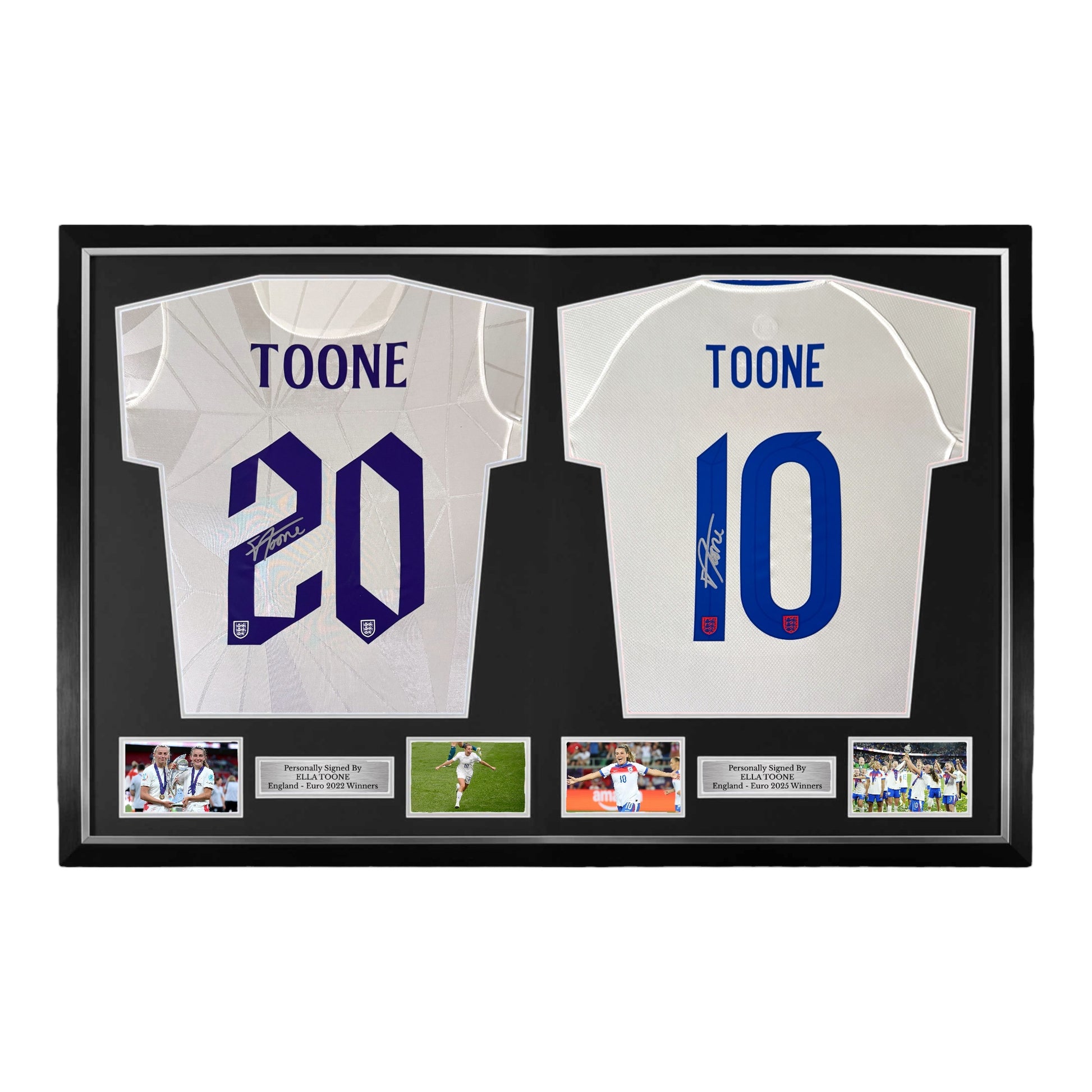 Ella Toone Signed England 2022 & 2025 Euro Winners Shirts- Dual Deluxe Framed